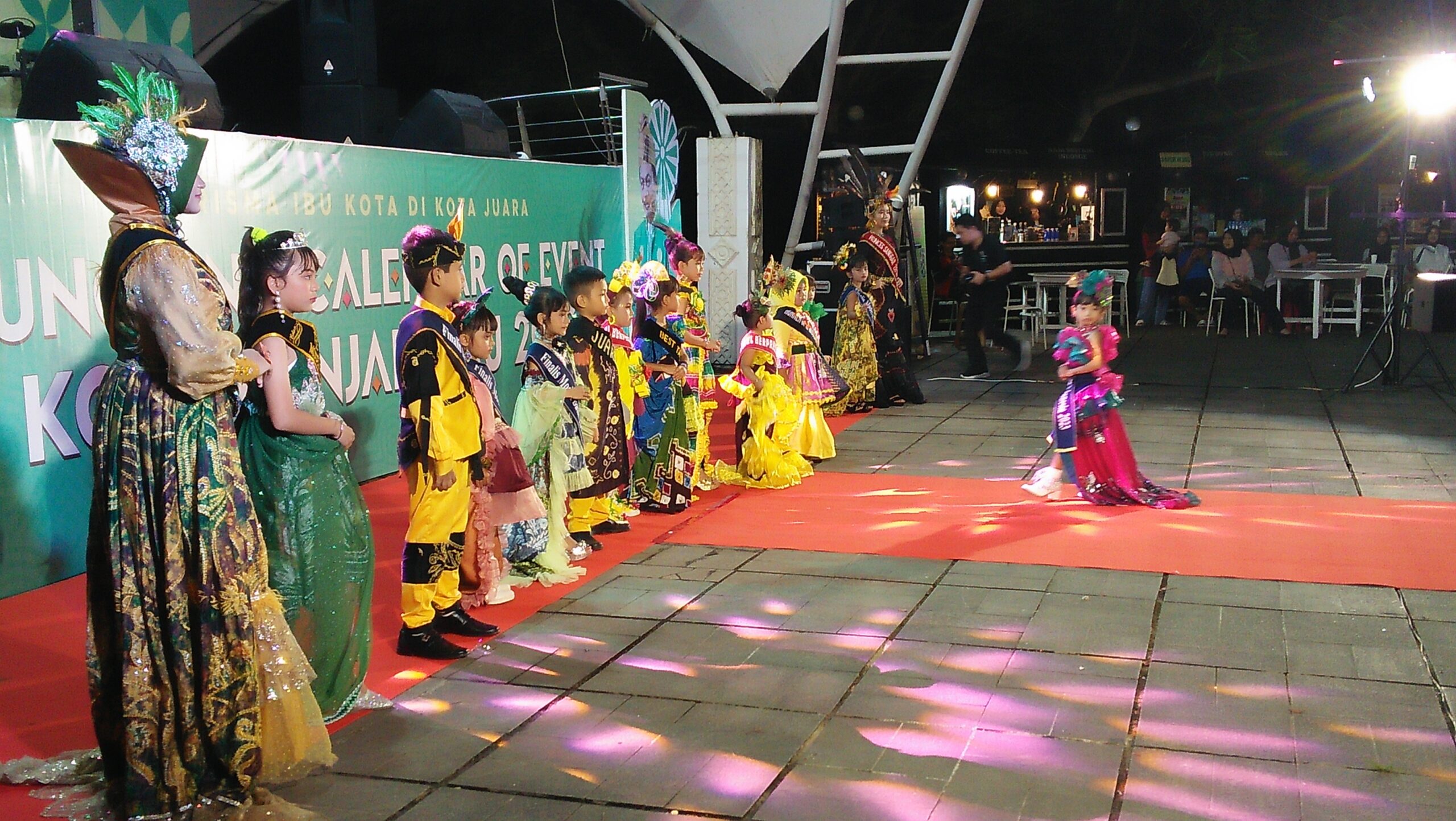 Sebelum acara puncak dimulai, sejumlah anak berpakaian ala Miss Indonesia tengah tampil di karpet merah dengan beragam busana yang dipertunjukkannya. Tak lama, acara selanjutnya menampilkan pentas Teater Sampan dengan anggota yang memperagakan setiap acara event tahunan tersebut.