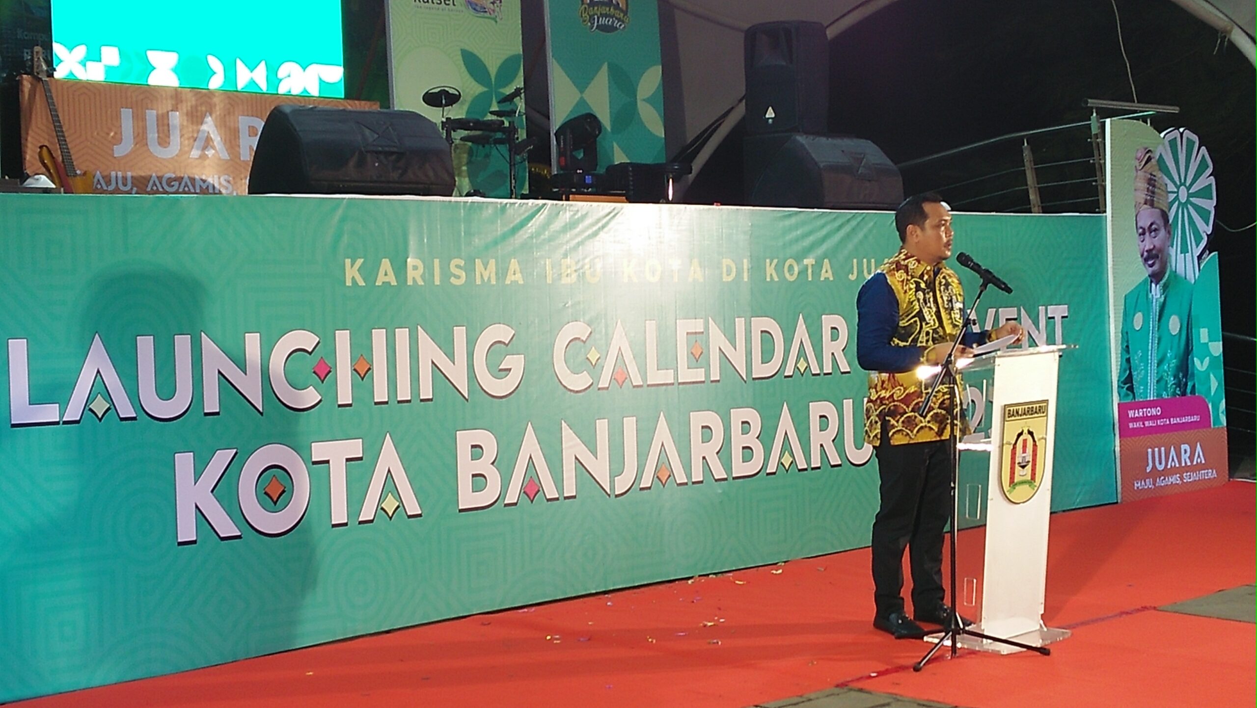 Wali Kota Banjarbaru, H. M. Aditya Mufti Ariffin meluncurkan Calender of Event Kota Banjarbaru Tahun 2023 di Mess L, Sabtu (18/03) malam. Didampingi oleh Wakil Wali Kota Banjarbaru, Wartono bersama Ketua DPRD Banjarbaru, serta jajaran Forkopimda Banjarbaru, melihat langsung sederet event yang ditampilkan di layar panggung.