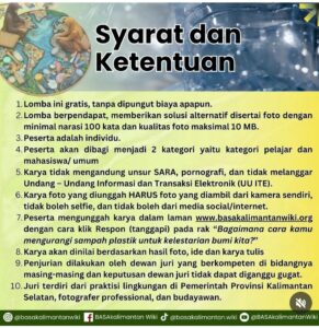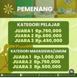 Anggrek juga menginformasikan bahwa penjelasan lebih jauh tentang lomba ini bisa mengunjungi medsos @basakalimantanwiki. “Silakan follow juga. Karena di sana akan banyak info kegiatan lainnya,” tandasnya.