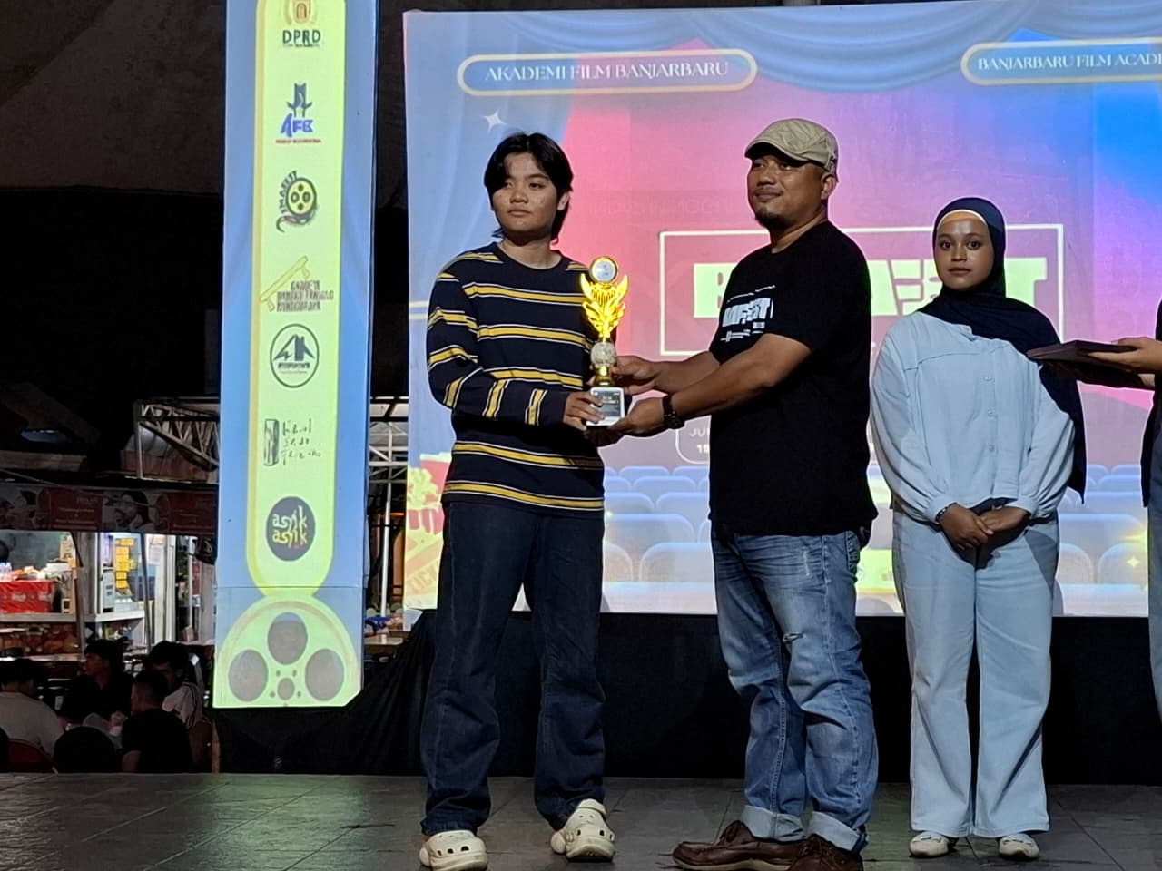 Ketua Akademi Film Banjarbaru Rory Aksara Menyerahkan Hadiah Kepada Juara Terfavorit