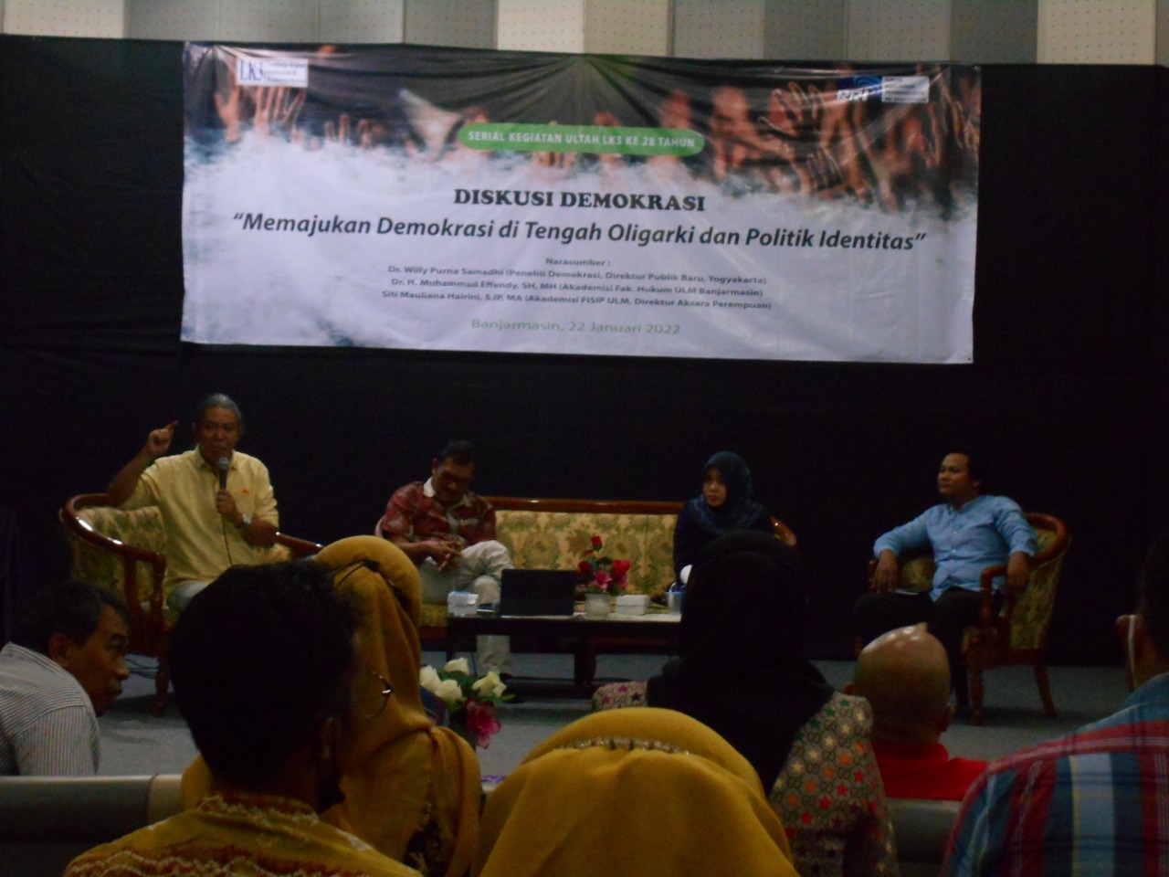 KATA-KATA politik identitas dan oligarki kerap masih disebut-sebut dalam perbincangan dan diskusi di sebagian kalangan masyarakat, terutama dihubungkan dengan pesta demokrasi. Berkaitan dengan itu, menandai ulang tahunnya yang ke-28, Lembaga Kajian Keislaman dan Kemasyarakatan (LK3) Banjarmasin menghelat diskusi bertema “Memajukan Demokrasi di Tengah Oligarki dan Politik Identitas,” bertempat di Studio Satro Harjo RRI Banjarmasin, Sabtu (22/1/2022).
