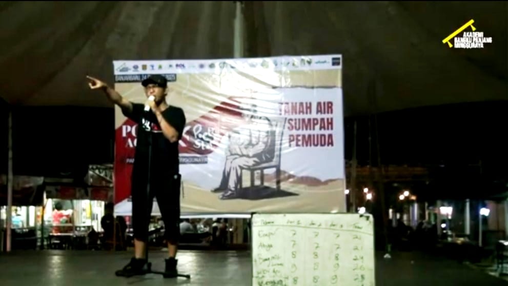 “Puisi yang disampaikan bukan karya puisi yang sudah dihapal, bukan lomba deklamasi, puisi langsung tercipta di atas panggung,” sampai Nae.