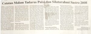 Istilah Tadarus Puisi dan Silaturahmi Sastra telah ada sejak 2004 (kliping di atas memuat backdrop yang dibuat handmade oleh Aan Alfianoor)